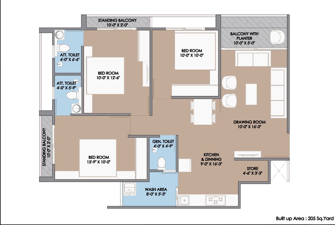 | UNIT TYPE:- | 2BHK – [ 140 TO 195 S.Q.YARD] & 3BHK – [205 S.Q.YARD] |